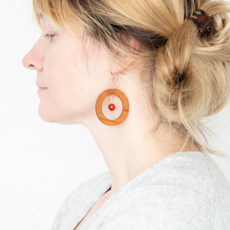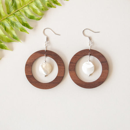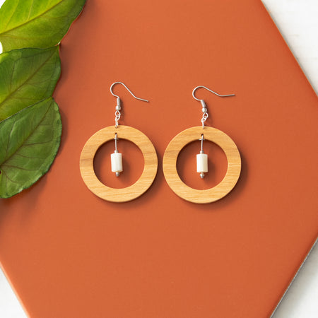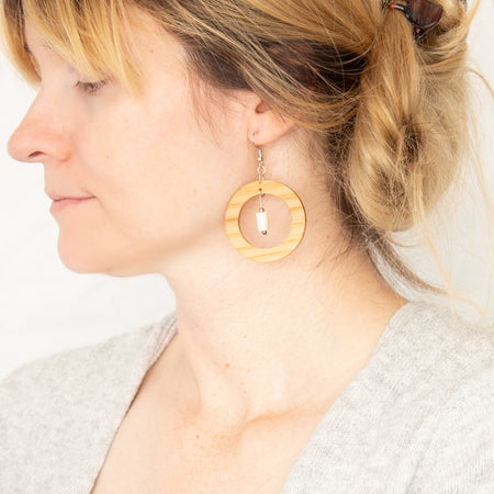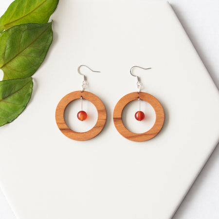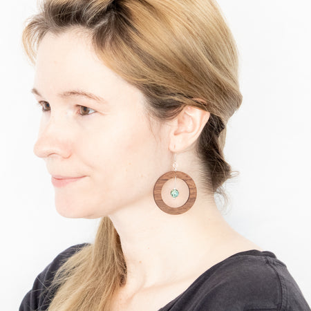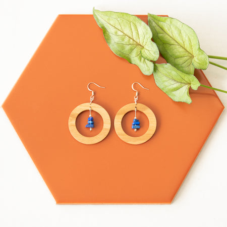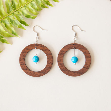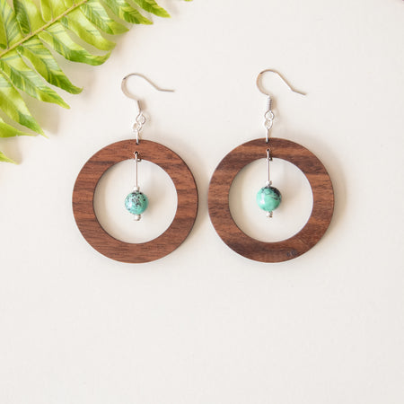The Helios Collection features a blend of gemstones, silver accents, and wood designs that use locally sourced wood materials to create unique and one of a kind earring pieces. All earrings feature silver plated brass earrings hooks and are nickle free.